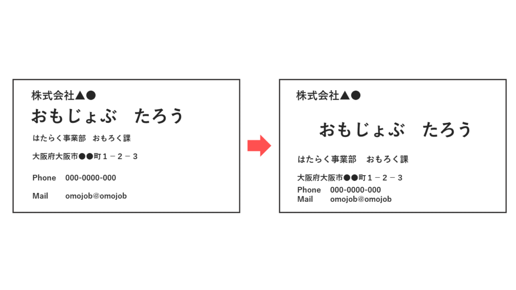 一目で大事な情報がわかるように、文字や図のサイズを調整します。