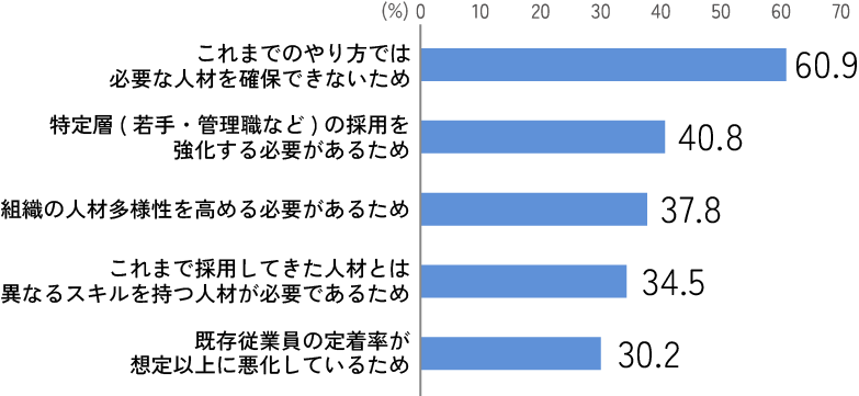 多くの企業が「これまでのやり方では必要な人材を確保できない」と認識している。