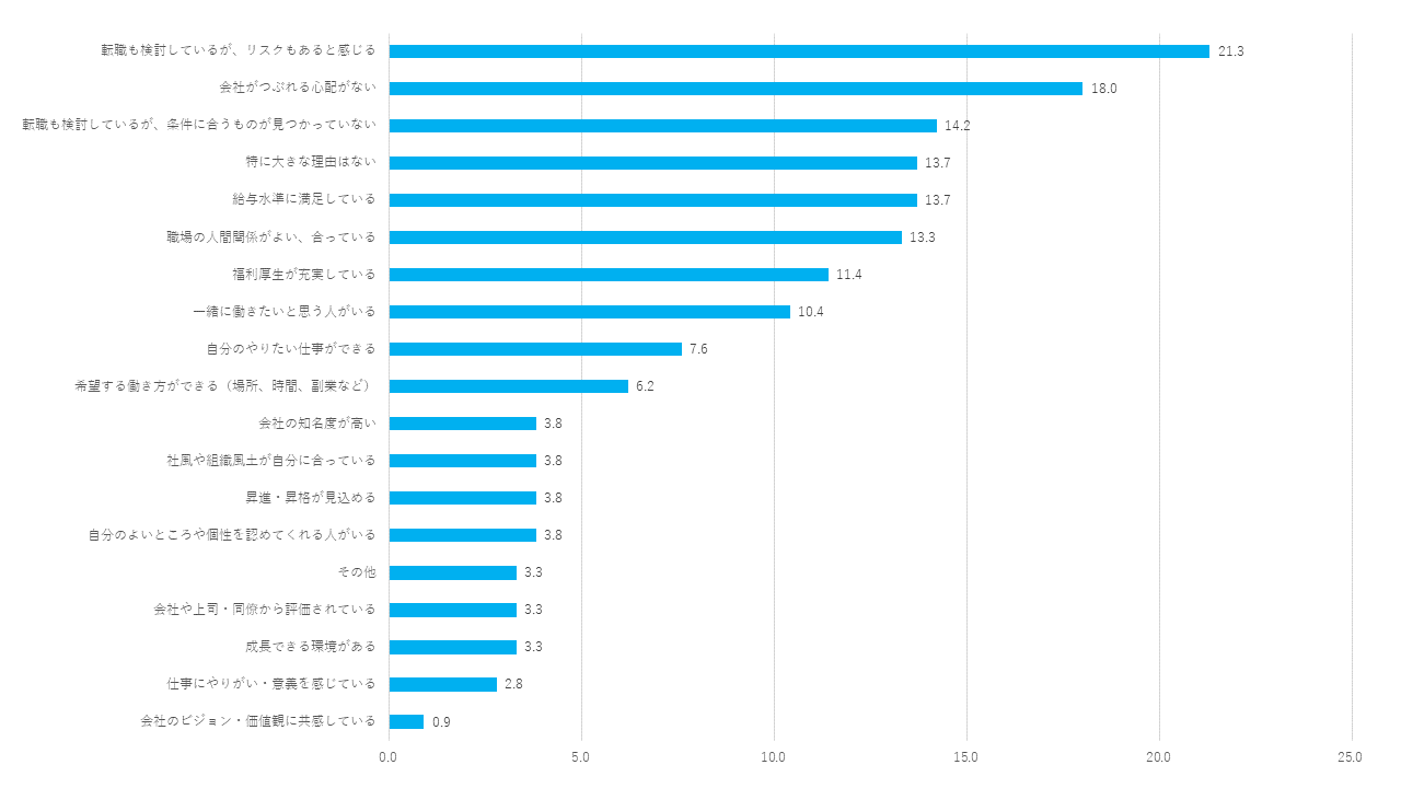 では、辞めたいと思いつつも、なぜ辞めずに働き続けているのだろうか。辞めるよりも魅力的な何かが職場にあることを信じつつ、次の質問の答えを見てみよう。