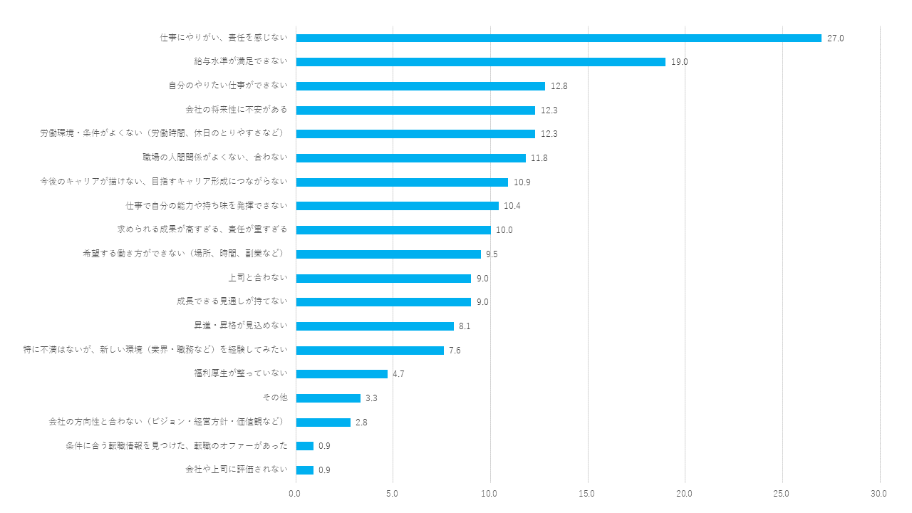 この結果は、「辞めたいと思った理由」にぴったり呼応している。