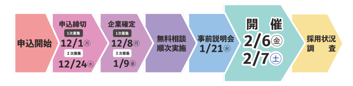 求職者の関心が高い“勤務地”をPRする「あの町で働こう」のコンセプトはそのままに、短時間で出展できる「時短ブース」と、実際の仕事を体験できる「おしごと体験ブース」を新設。さらに、来年以降の新卒採用につながる「業界研究ツアー」など、貴社が求める人材と出会える多彩な機会をご用意しています。ぜひご出展ください。
