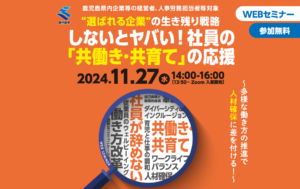 【アーカイブ】「“選ばれる企業”の生き残り戦略 しないとヤバい!社員の「共働き・共育て」の応援 ~多様な働き方の推進で人材確保に差を付ける!~」アーカイブ視聴のご案内