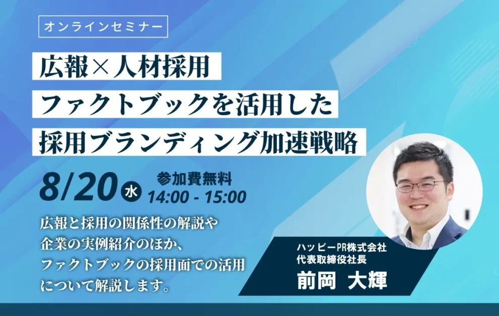 [オンラインセミナー]広報×人材採用 ファクトブックをファクトブックを活用した採用ブランディング加速戦略 8/20(水)