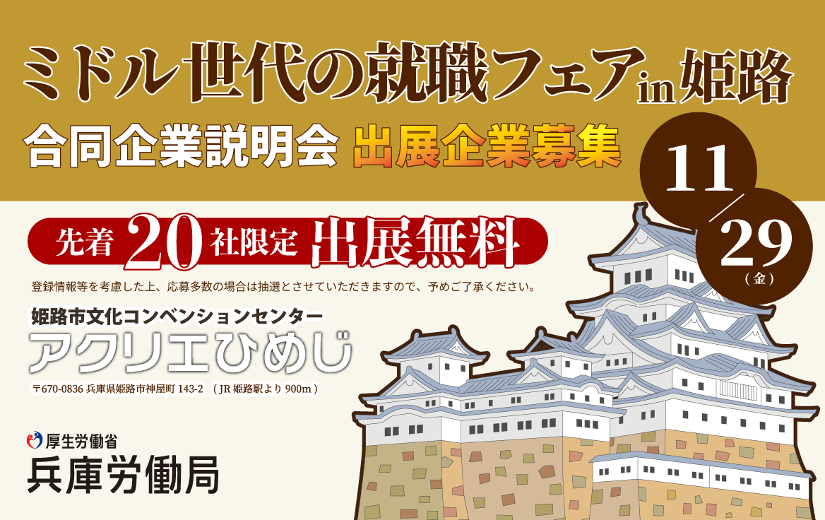 2024/11/29(金)『新たな一歩へ!ミドル世代の就職フェア in 姫路』合同企業説明会 出展企業募集