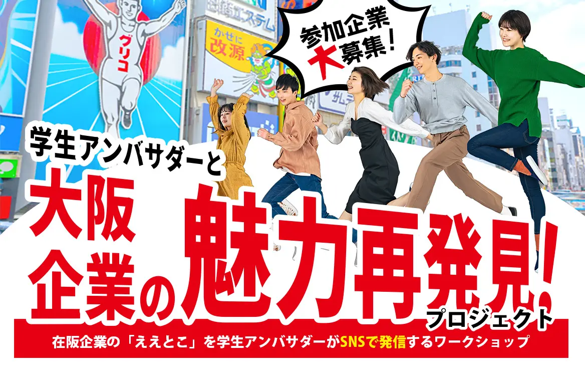 これからの未来を担っていく現役大学生がアンバサダーとなって、大阪の企業・産業の魅力を再発見しジブンの言葉で発信していくプロジェクトが始動します! 学生から社会に、さらには学生から国内外の多くの人に、在阪企業の「ええやん!」を知ってもらうこ...